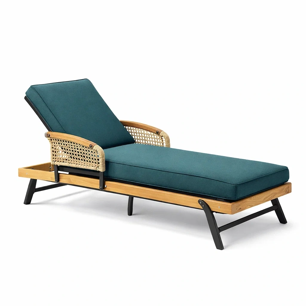 Sdraio regolabile in rattan sintetico con cuscini blu