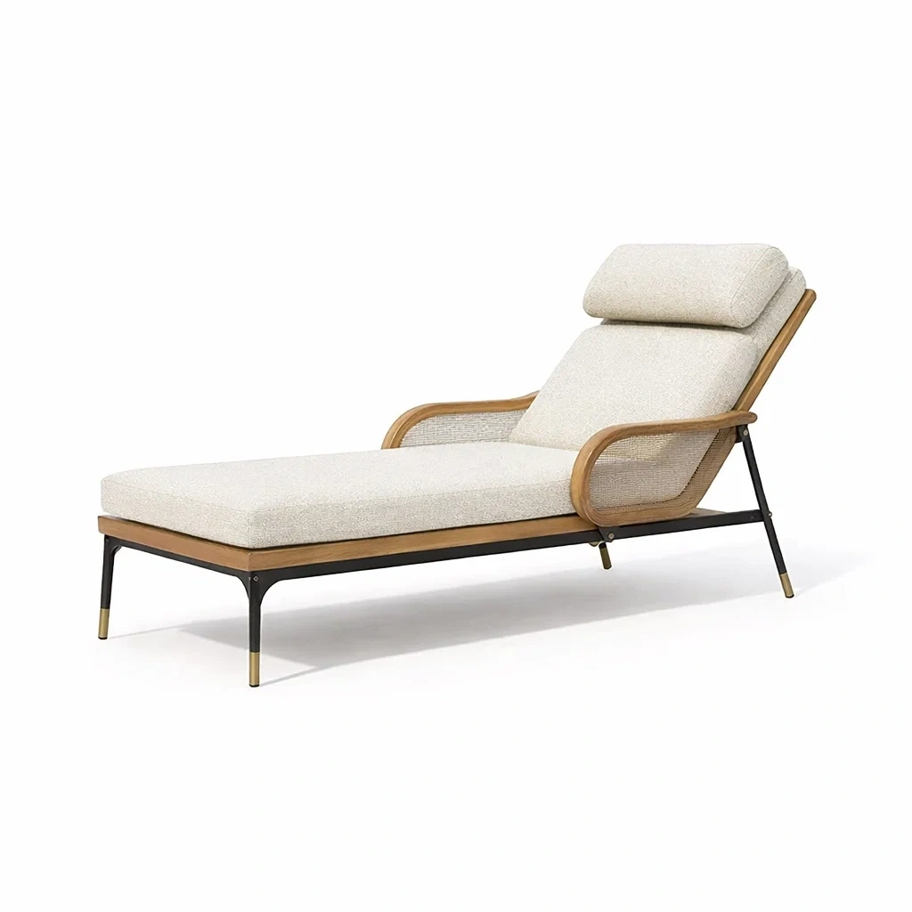 Sdraio in legno e acciaio con cuscino in poliestere beige